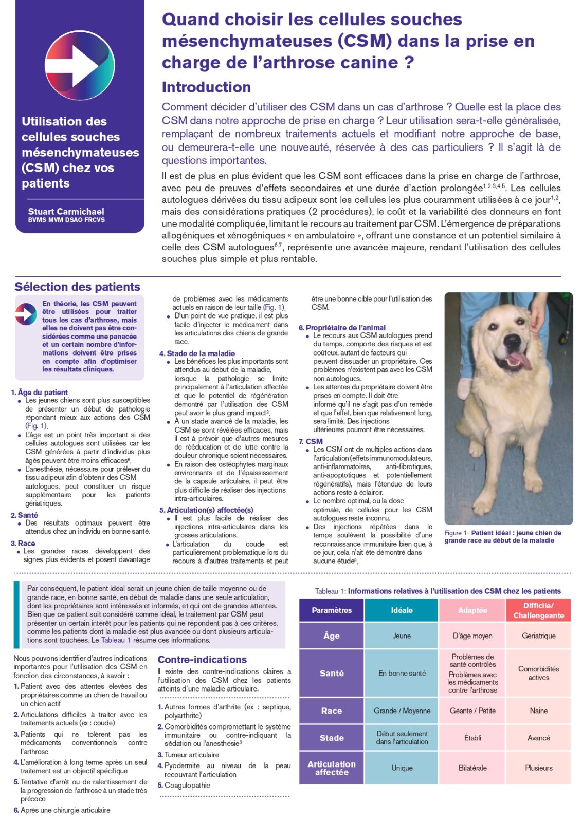 Comment choisir les cellules souches mésenchymateuses (CSM) dans la prise en charge de l’arthrose canine ?